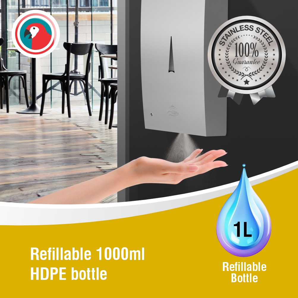 Janitorial Stainless Steel Wall Mounted Auto Sanitizer Dispenser 1000ml